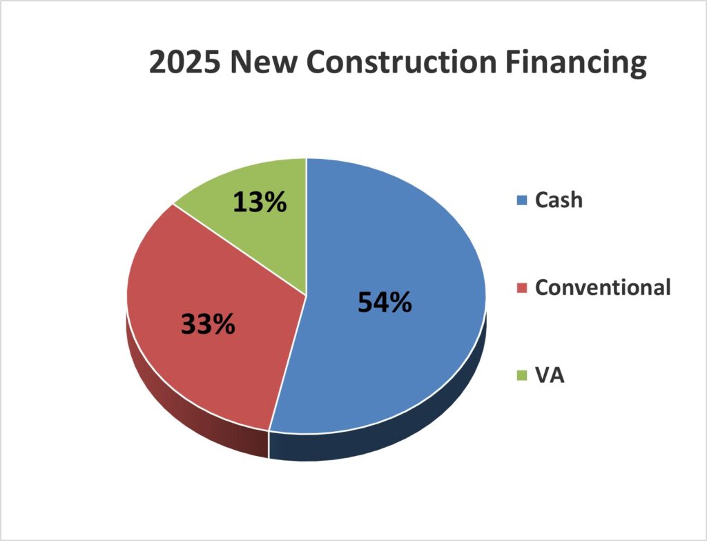 The 550 number of home sales in 2025 is also still declining from the 565 home sales in 2024 and is approximately 39% lower than the peak of 901 sales in 2020. There is also currently a 5.5 month supply of residential housing in the local residential market based on the average monthly absorption rate of 45.83 sales/month during 2025 and an average marketing period (the time needed to get a home under contract from the original marketing start date) of 103 days, which is the longest marketing time posted since 2021. Note that 32% of the homes sold in Ravalli County through 3Q25 were cash buyers, 51% of the home buyers used conventional financing, approximately 14% used FHA or VA financing and the remaining 3% were seller financed or other forms of financing.